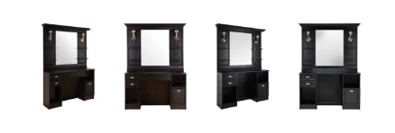 Brivska enota LEXUS je odlična rešitev za brivske in frizerske salone. Okrašena v slogu art deco nanaša se na pretekla obdobja in ustvarja edinstven dekor v dnevni sobi. Opremljena je z odprtimi policami, predali in omarico, tako da bodo vsi potrebni pripomočki in kozmetika na dosegu roke. Popolnoma se bo podala tako v industrijske kot bolj rustikalne in eklektične interierje. Dobro se ujema s temnimi nasičenimi barvami in opeko, pa tudi s strogimi belimi stenami.