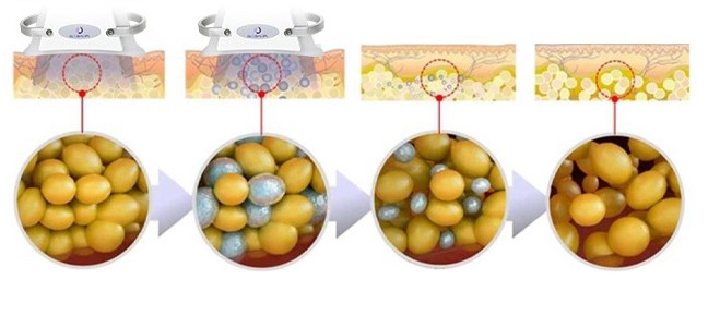 Pri kavitaciji govorimo o resonančnih tlačnih valovih pri neprekinjenem prenosu energije. Energija se usmeri v maščobno plast, hitro vibrira globoko zakoreninjeni celulit, proizvede nešteto mikro mehurčkov, močno udari v maščobne celice, pusti jim, da počijo in se raztopijo v proste maščobne kisline, glicerol in vodo.