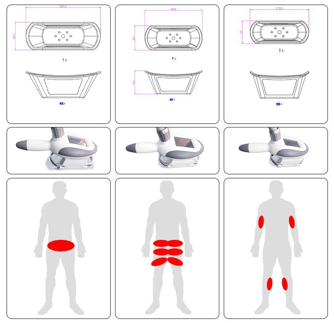 - 5 ročnikov - ročnik za kriolipolizo za večje površine, ročnik za kriolipolizo za manjše površine, lipo laser, multipolarna radiofrekvenca, kavitacija.