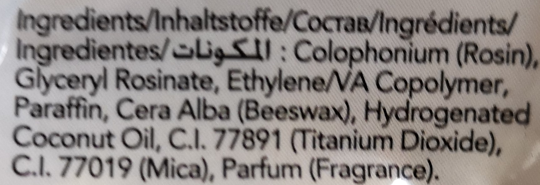 ItalWax vosak BIJELA ČOKOLADA ima u sebi titanov dioxid, čije je osnovno obilježje da vosak čini gustim i kremastim za lakše nanošenje i bolje razmazivanje.