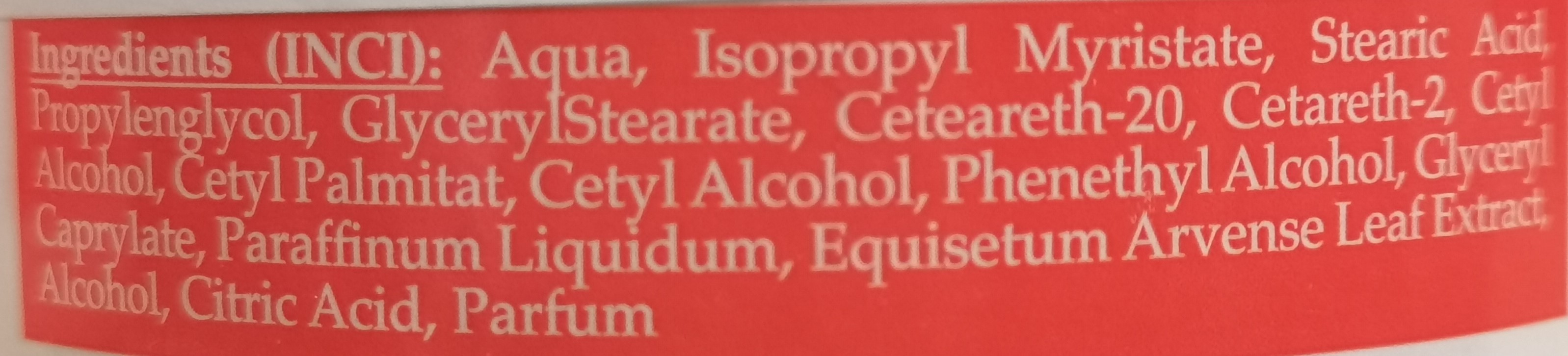 Ugodno klizava masažna krema prikladna je za masažu osjetljive kože. Sadrži učinkoviti biljni ekstrakt poljske preslice koji, zahvaljujući visokoj koncentraciji silicija, učvršćuje tkivo. Osim toga, koži pruža veću elastičnost, poboljšava stanični metabolizam i pomlađuje kožu zahvaljujući visokom udjelu dragocjenih flavonoida. Koža postaje čvršća i vitalnija. Prikladna je za korištenje na tijelu i licu. Posebno se preporučuje za osjetljive tipove kože. Ne sadrži parabene ni umjetna bojila. Samo za profesionalnu upotrebu.