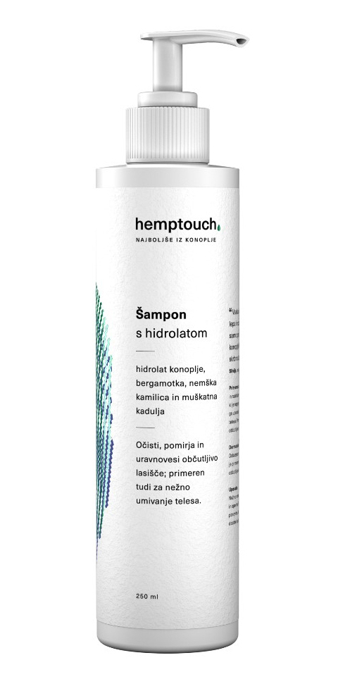 Upotrebljavajte nježan gel za tuširanje, koji kožu hrani i vlaži. Hemptouch Šampon s hidrolatom sadrži hladno prešano konopljino ulje i bogat je konopljinim hidrolatom. Taj 100 % prirodan i nježan šampon nahrani kožu i kosu te očisti vlasište. Bergamot smiruje nadraženu kožu, dok muškatna kadulja i plava kamilica ublažavaju probleme i smiruju kožne reakcije.