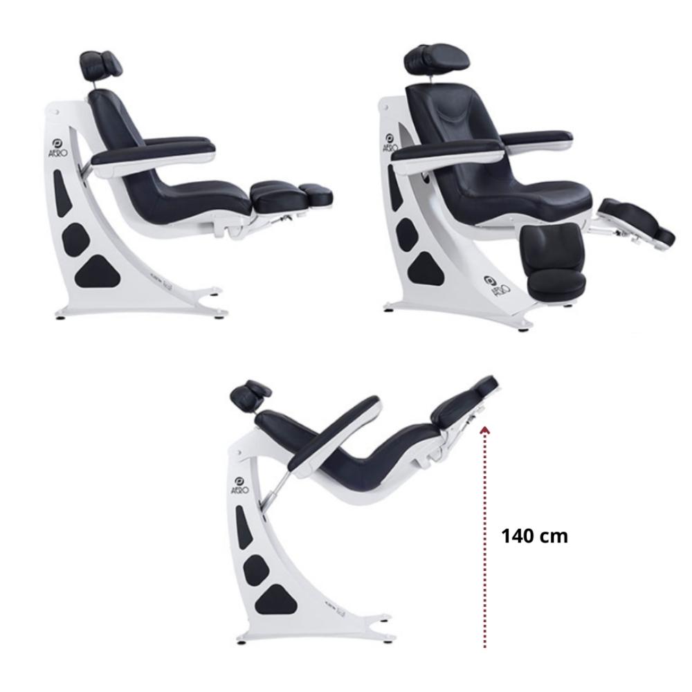 Novost Aero pedikirskih stolica je što im je potreban samo jedan motor za podešavanje na sve moguće položaje, stoga je vrlo jednostavan za korištenje, a uz to je i puno lakši od ostalih pedikirskih stolaca.