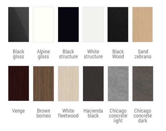 Kratek primer: Predalnik je dobavljiv z matt ali gloss zaključkom (visok sijaj).