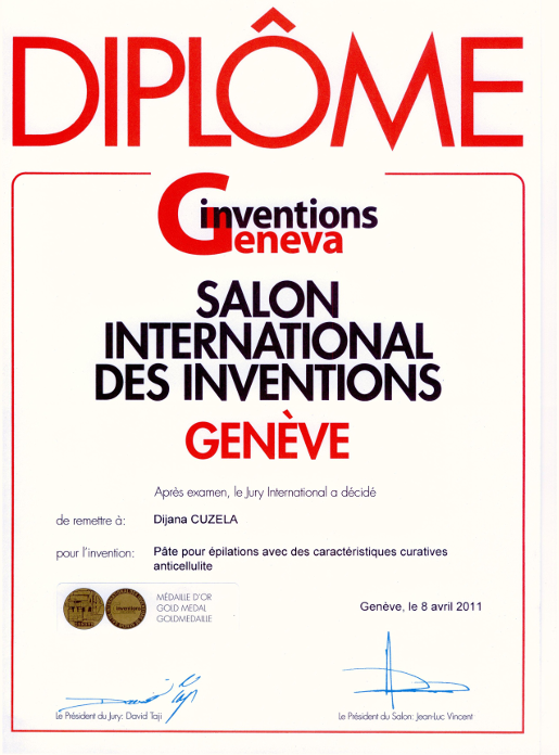 - Geneva 2011- Zlata medalja s področja kozmetike in medicine