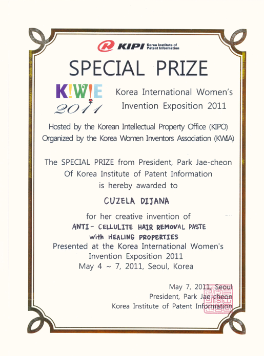 - Seoul 2011- Srebrna medalja na svetovni razstavi Ženske inovacije v Južni Koreji