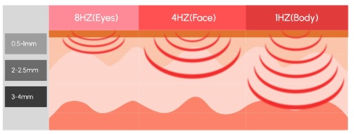 Snaga 100 W (8MHz za kuteve očiju, 4MHz za lice i vrat te 1MHz za tijelo)