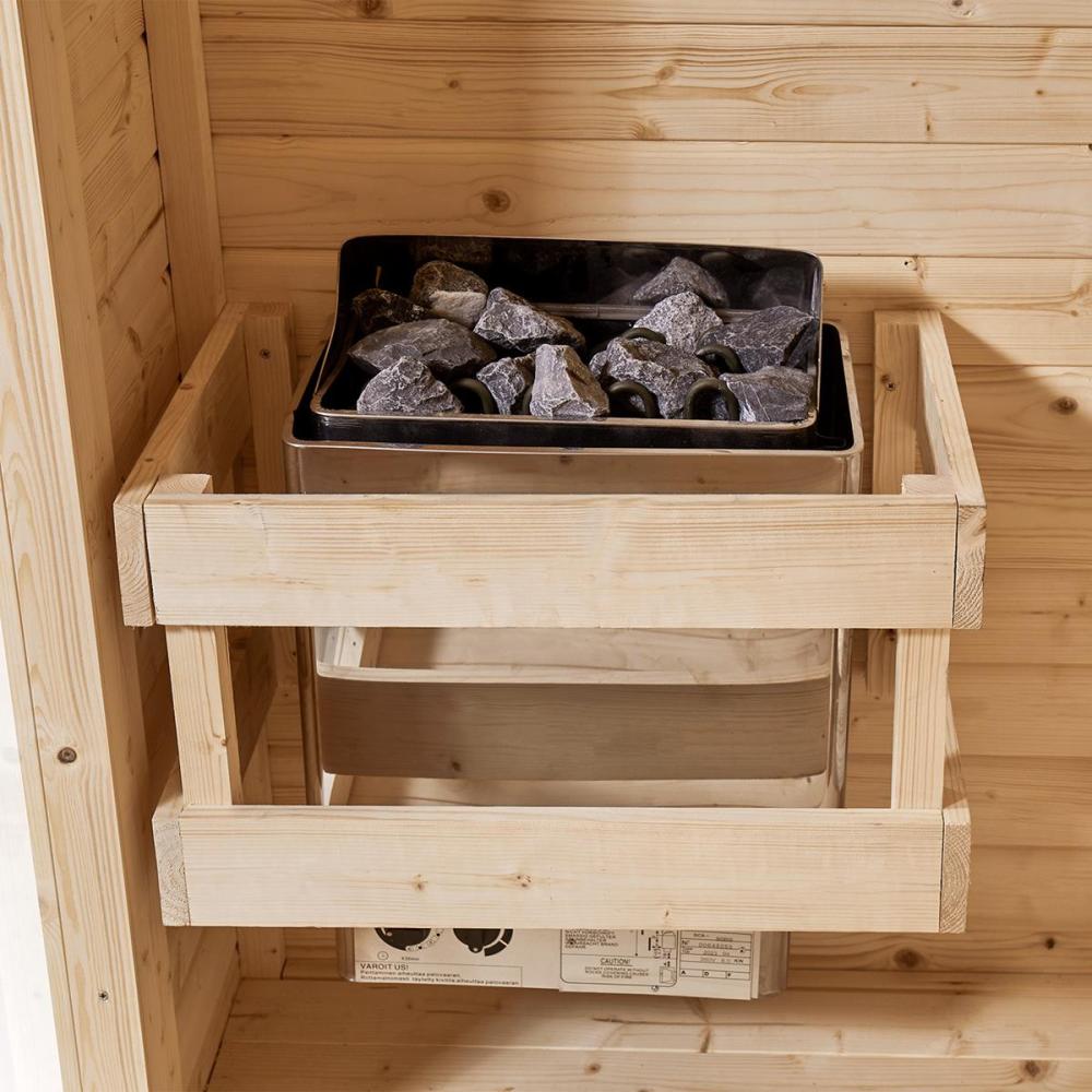 Uključuje snažan električni grijač za saunu od 8 kw (s pojedinačnim kamenjem za saunu i zaštitnim okvirom).