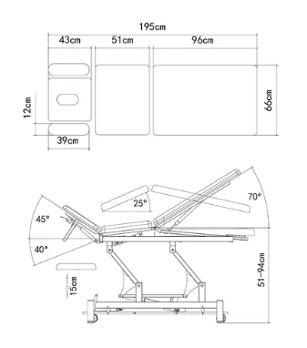 Ova petodijelna terapeutska stolna jedinica popularan je izbor među fizioterapeutima. Odlikuju je pouzdano i glatko električno podešavanje visine te mogućnost posturalne drenaže, sve upravljano nožnom pedalom.