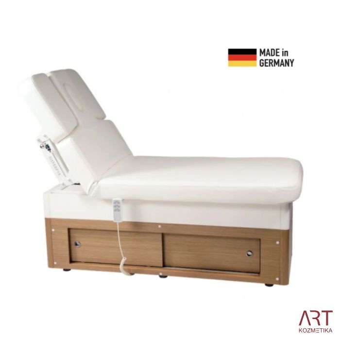 Pomoću daljinskog upravljača jednostavno se podešavaju visina, nagib naslona kao i tzv. krovna (V) pozicija. Tri snažna motora rade tiho i glatko. Između ručno podesivih naslona za ruke nalazi se u području glave zatvorivi otvor za lice.