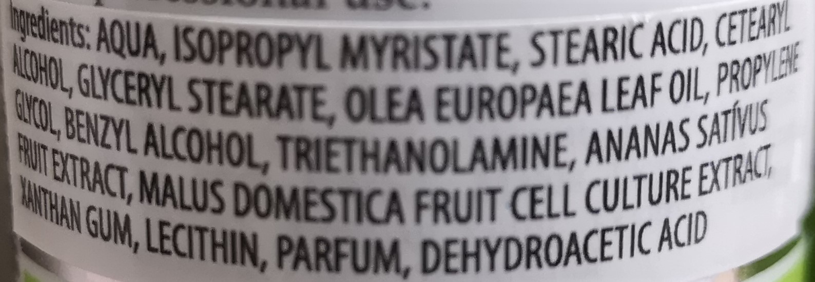 - Njegov naravni izvleček ananasa vsebuje proteolitične encime, ki delujejo kot biološki piling.